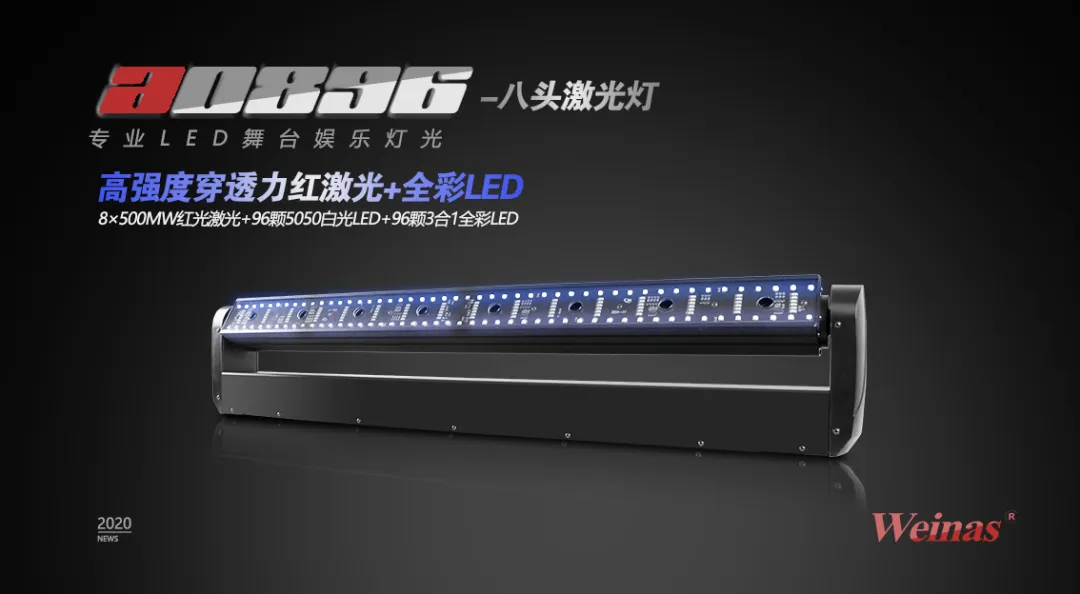 光 源:8×500mW紅光激光+96顆5050白光LED+96顆3合1全彩LED